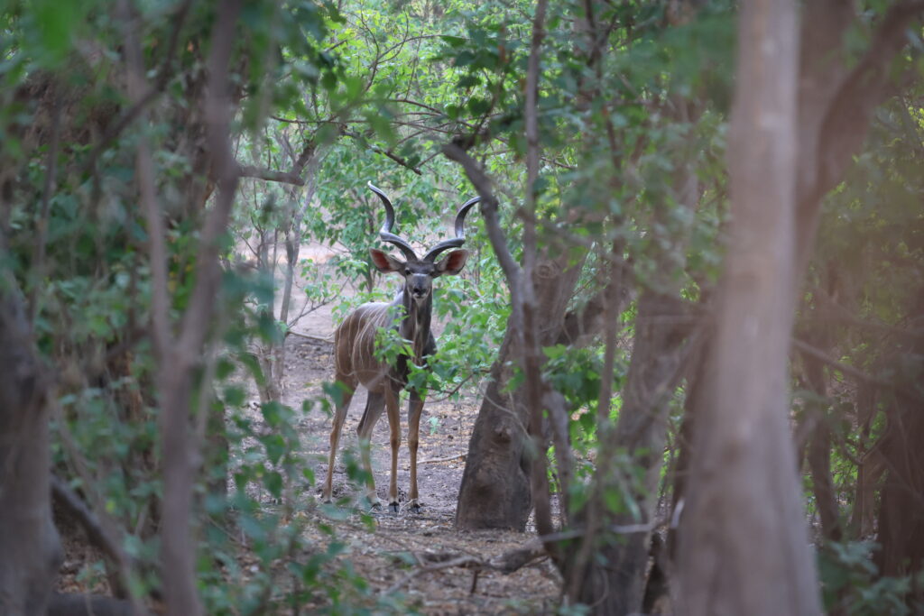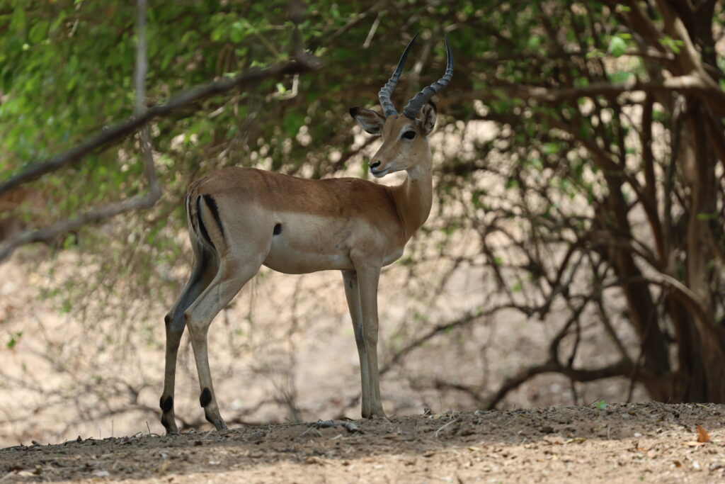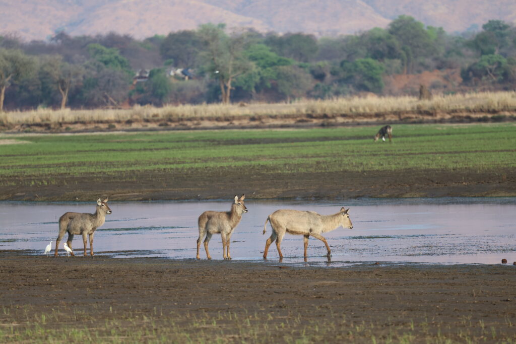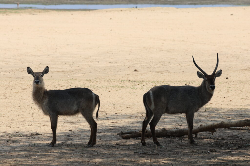Dans la famille des antilopes, le cobe à croissant, que l’on reconnait à son pelage gris-brun hirsute et un anneau blanc autour de la croupe..