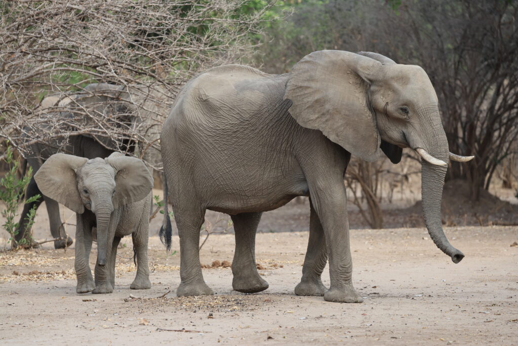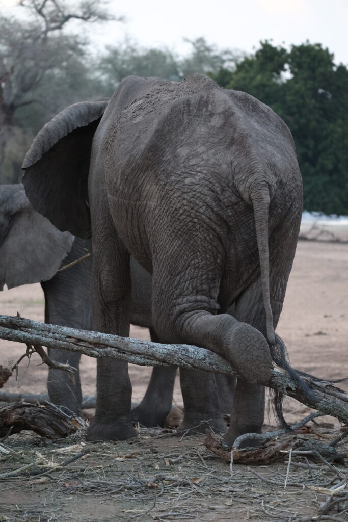 Tandis que les Pachydermes continuent inlassablement de se nourrir (entre 150 et 200 kgs de végétaux par jour)