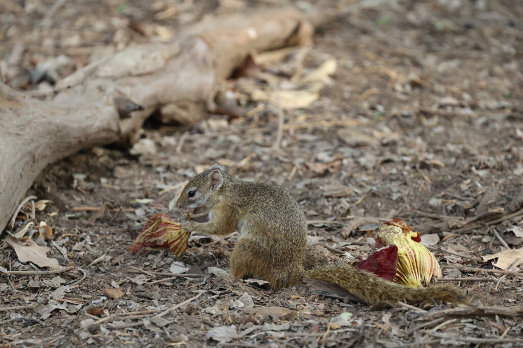 L’écureuil à pieds jaunes lui aussi se régale, de fleurs