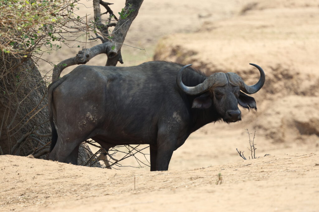 L’un des fameux « Big five », le buffle d’Afrique, surveille au loin…